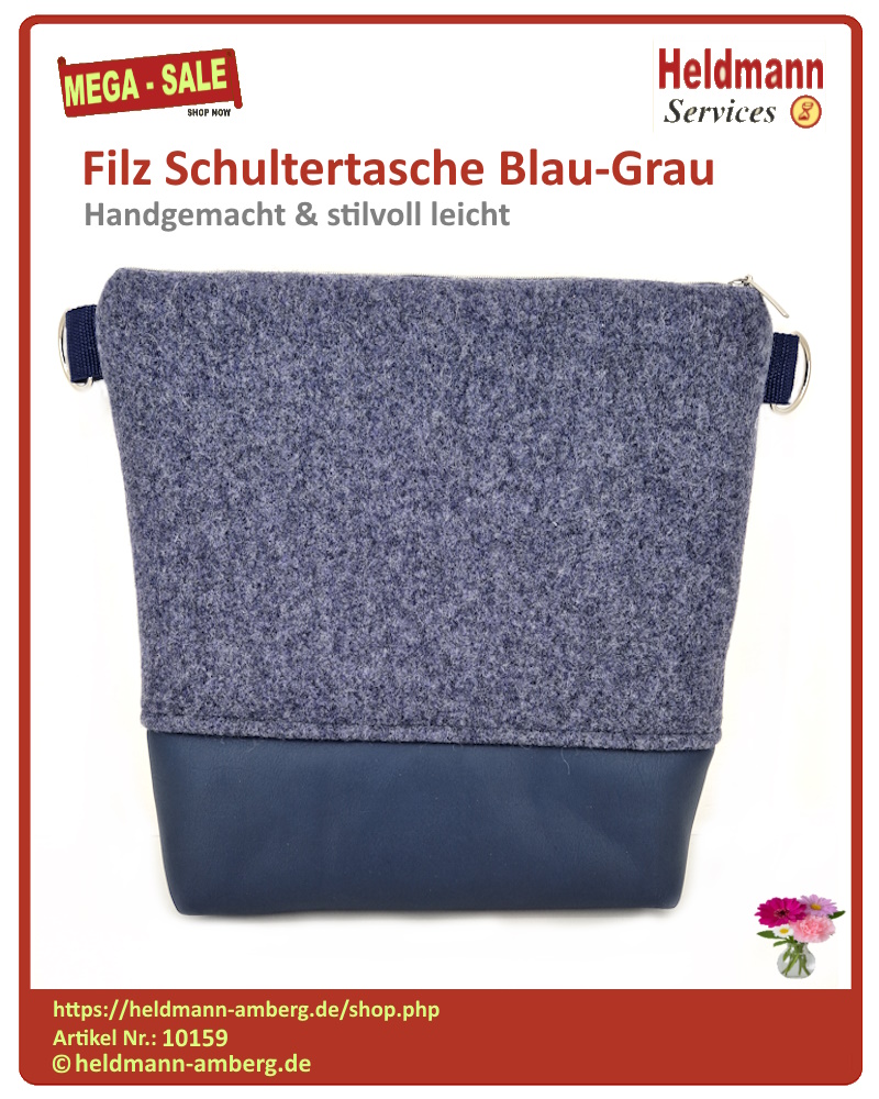 Artikel-Eigenschaften Filz Schultertasche Blau-Grau |